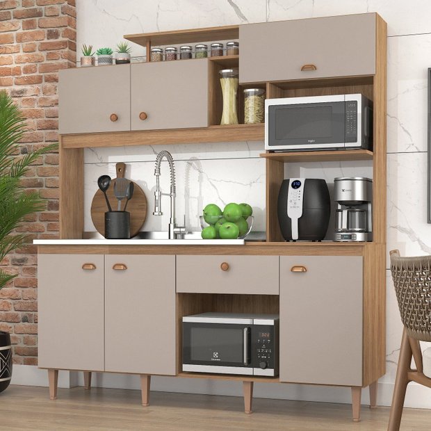Cozinha Compacta 6 Portas e 1 Gaveta Belluna Mel/Fendi