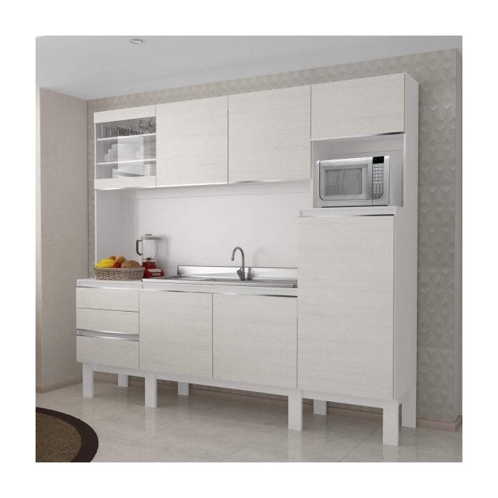 Cozinha Compacta 7 Portas Puxador Embutido Lunga Uno Espresso Móveis Branco/Bianco Ravena