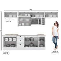 | Itens Inclusos | 1 Balcão 3 Gavetas 2 Portas sem Tampo, 2 Aéreos 1 Porta Basculante, 1 Balcão 1 Porta com Tampo, 1 Aéreo 2 Portas com Vidro, 1 Aéreo Microondas, Kit Ferragens e Manual de Montagem |