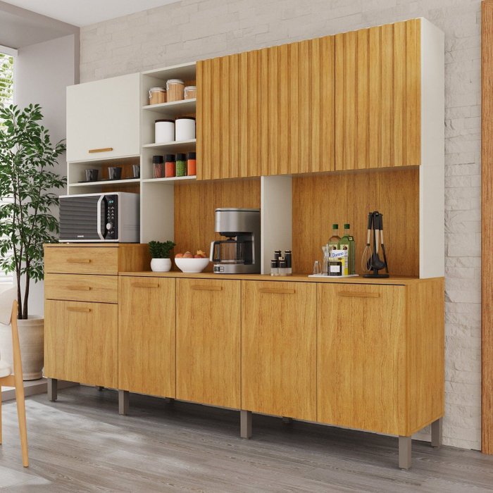 Cozinha Compacta 9 Portas 2 Gavetas Louvre Cinamomo / Off White Acetinado