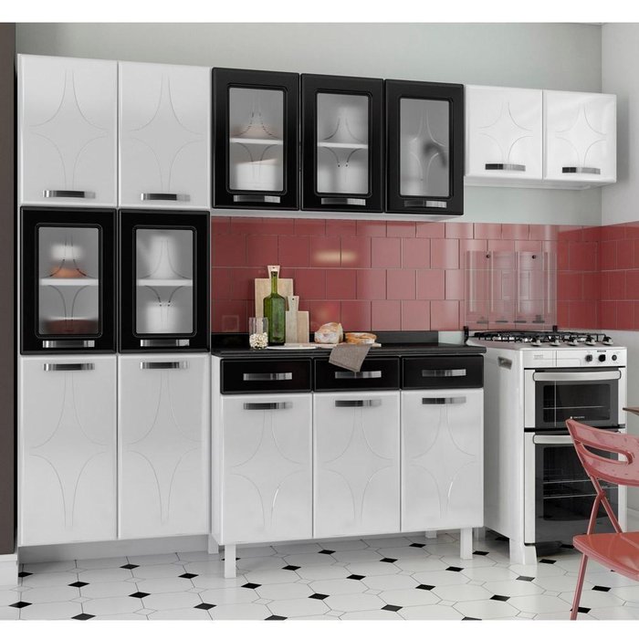 Cozinha Compacta Aço Rubi 5 Vidros 3pçs Branco Preto Branco/Preto Brilhante