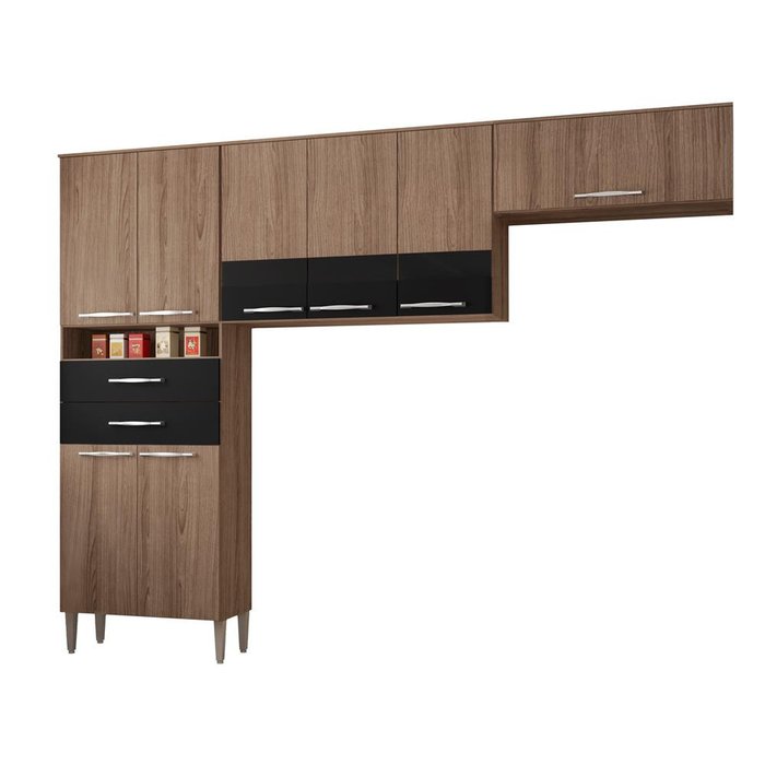 Cozinha Compacta Bartira Safira Plus com 8 Portas e 2 Gavetas Cumaru com Grafite