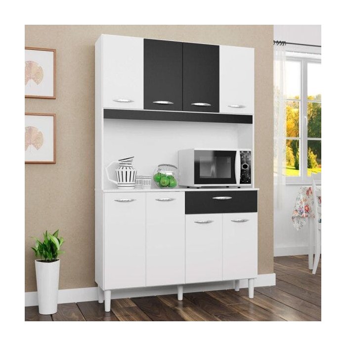 Cozinha Compacta Cássia 8 Portas 1 Gaveta Poquema Branco com Preto