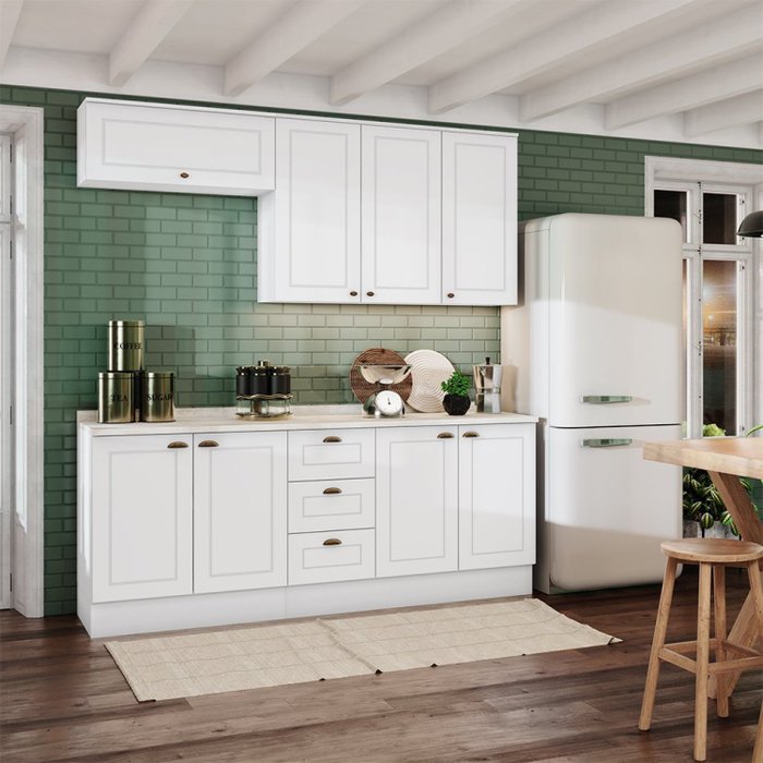 | Montagem Flex | Pode ser montado em 2 formatos, tanto suspenso, quanto com rodapés (Peças necessárias para essas 2 opções inclusos na caixa). Além disso, pode ser montando com Kit Pés, este é vendido separadamente através da ID 630160 Kit 4 Pés Cônicos para Cozinha Emily |