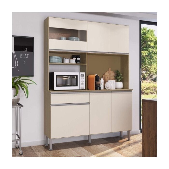 Cozinha Compacta com Vidro 6 Portas 1 Gaveta Marina Genialflex Móveis Brunne/Off White