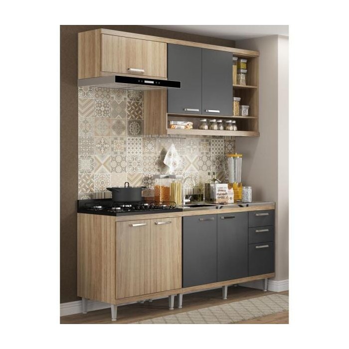 Já pensou em uma cozinha completinha chegando na sua casa? Então não perca essa oportunidade da Multimóveis!A linha de cozinha Sicília da Multimóveis Decor foi desenvolvida para proporcionar praticidade e funcionalidade na criação do ambiente. São diversas modulações e composições de cores que permitem construir espaços personalizados, onde a combinação de suas escolhas darão o toque pessoal a cada projeto.Elas buscam inspiração nas cores, sabores e aromas dos vales italianos.A Cozinha Sicília é composta por: - 01 Aéreo Basculante 70 cm- 01 Aéreo de 120 cm- 01 Balcão duplo com tampo 70 cm- 01 Balcão para pia 120 cm- Manual de montagem - Certificado de Garantia: 03 meses contra defeito de fabricação Porque comprar a Cozinha Sícilia? Porque é uma das cozinhas com maior altura e espaço interno do mercado. Além disso, possui várias opções de cores, acabamento em pintura UV acetinada texturizada. Material: MDPO que é o MDP? O MDP é produzido em três camadas: uma grossa no miolo e duas finas nas superfícies. Essa composição garante ao produto grande resistência estrutural, conferindo maior resistência ao empenamento e à colocação e remoção de parafusos, além de torná-lo um material mais leve. Possui alta absorção de tinta no acabamento final. Detalhes Técnicos: Descrição: Kit Cozinha 4 módulosCor da Caixa: Argila Acetinado TexturizadoCor das Portas: GrafitePortas: 7Tipo de portas: Porta de Abrir e Porta BasculantePorta com vidro: NãoGavetas: 3Prateleiras: 6Corrediça: MetálicaPuxador: PVCPistão a Gás: SimInclui Tampo no Balcão de 120 cm: NãoTampos dos balcões: BP de 25 mmPés: Com regulagem de altura em polipropilenoEspaço para microondas: Não DIMENSÕES: Altura (cm): 231,5Largura (cm): 190Profundidade (cm): 51,5 Instruções de Cuidado: Limpar com pano seco para retirar o pó. Favor não utilizar produtos químicos ou abrasivos na limpeza. Não recomendado aplicar lustra móveis. Observações: - O produto será entregue desmontado e a Multimóveis não disponibiliza serviço de montagem. Mas para facilitar a instalação, são enviados: Parafusos, pregos, cavilhas, entre outros. Em caso de dúvidas, favor consultar o manual de montagem. - Acompanha certificado de Garantia e Nota fiscal. Imagem ilustrativa: A decoração não acompanha o produto.