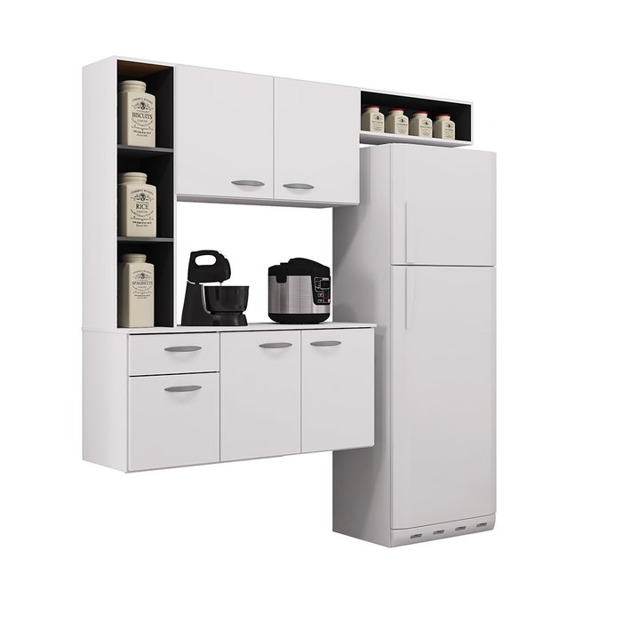 Cozinha Compacta Copa Armário Suspensa Monalisa 163 cm Branco/Preto