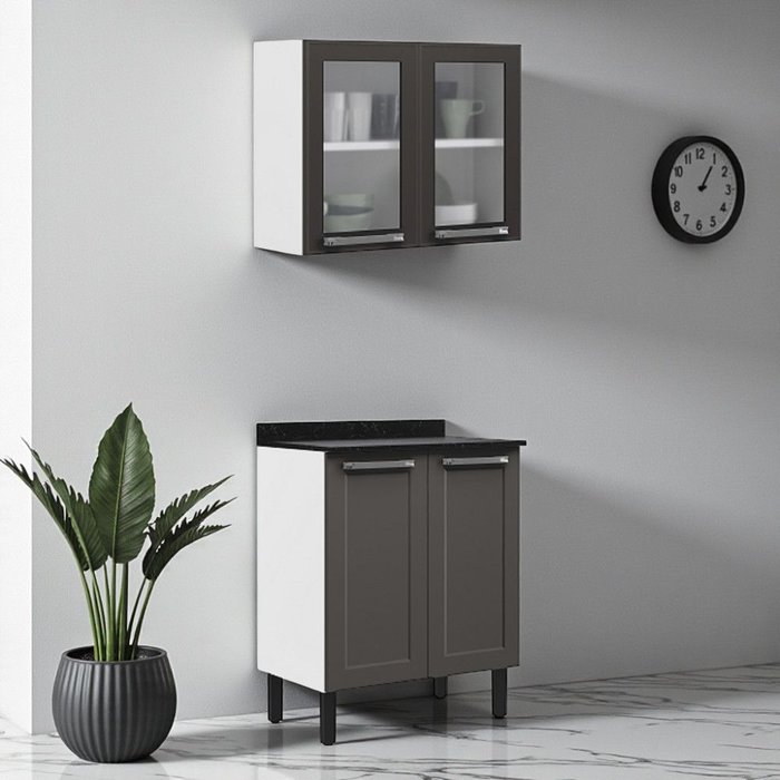 Cozinha Compacta em Aço 2 Peças 4 Portas Florença Itatiaia Grafite/Branco