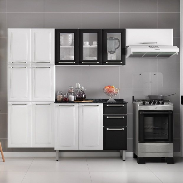 Cozinha Compacta em Aço 4 Peças 13 Portas 2 Gavetas Paneleiro Duplo em Aço Luce Itatiaia Branco/Preto
