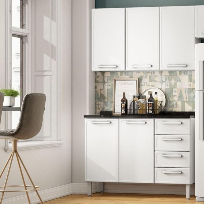 Cozinha Compacta em Aço 5 Portas 4 Gavetas Gourmet Bertolini - Branco Branco