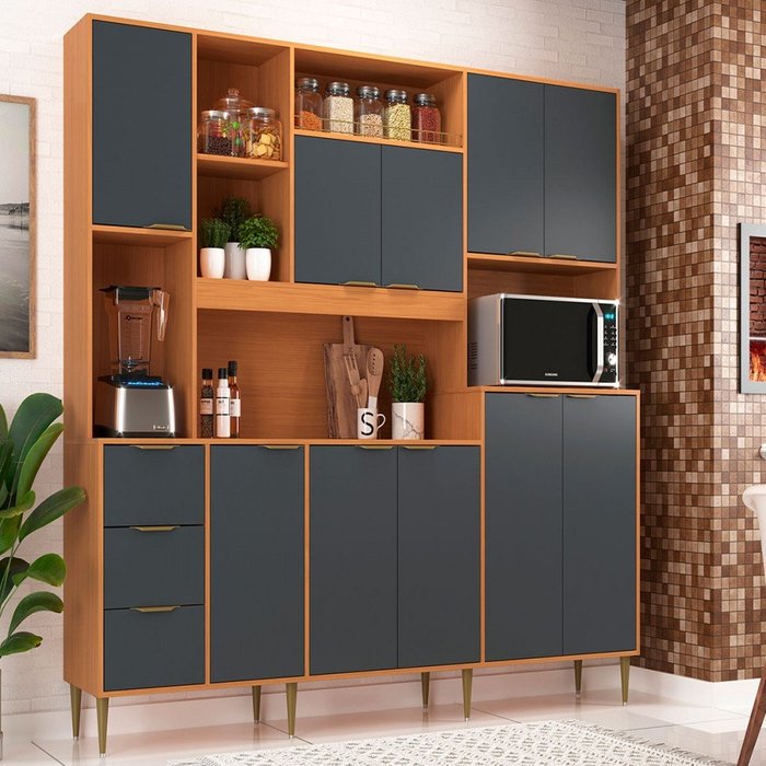 Cozinha Compacta Fernanda 10 Portas 3 Gavetas Angelin/grafite - Móveis Sul