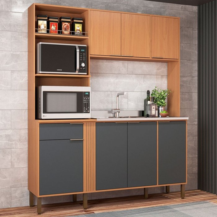 Cozinha Compacta Hellen 7 Portas 1 Gavetas Angelin/grafite - Móveis Sul Cinza