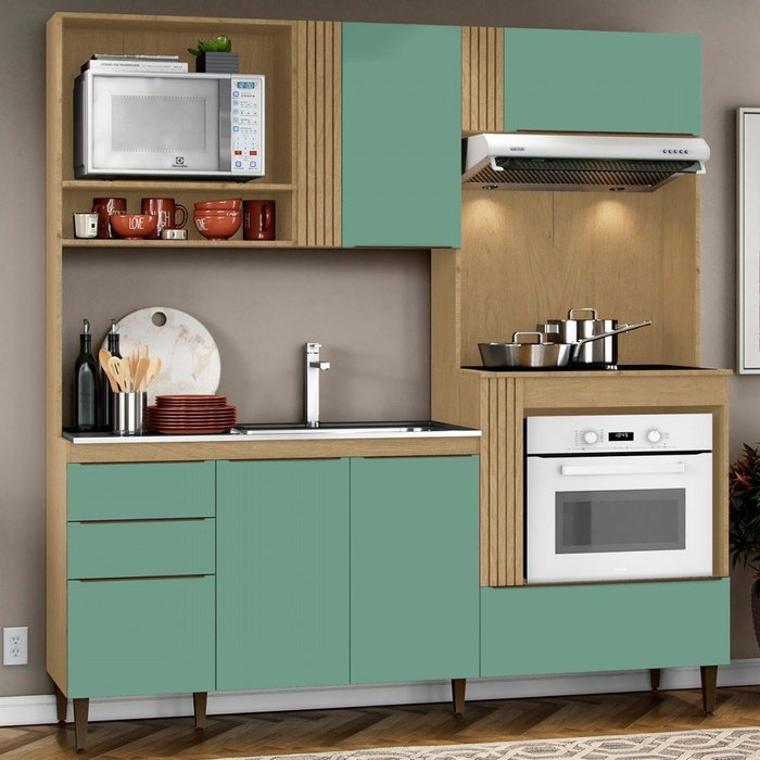Cozinha Compacta Lara Plus 5 Portas 3 Gavetas Atacama/verde - Aramóveis