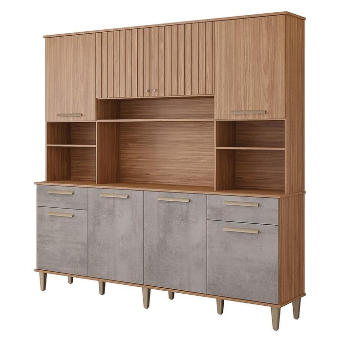Cozinha Compacta Lívia 200cm 8 Portas e 2 Gavetas Freijó/cimento - Mgm