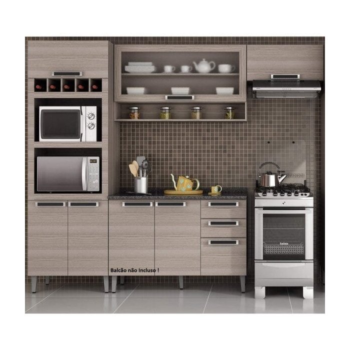Cozinha Compacta sem Balcão 3 Peças com Paneleiro para 2 Fornos Itatiaia