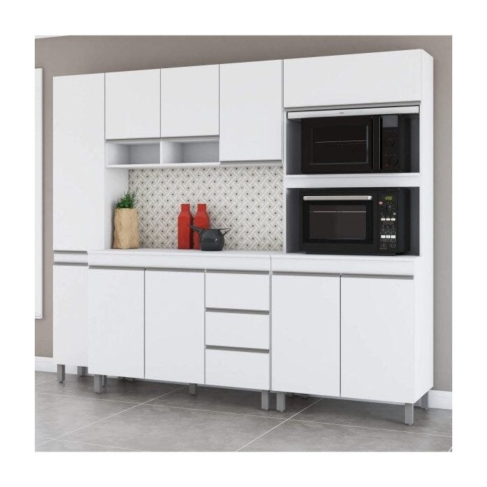 Cozinha Compacta Torre Quente Duplo 10 Portas 3 Gavetas 4 Peças Michy Espresso Móveis amadeirado
