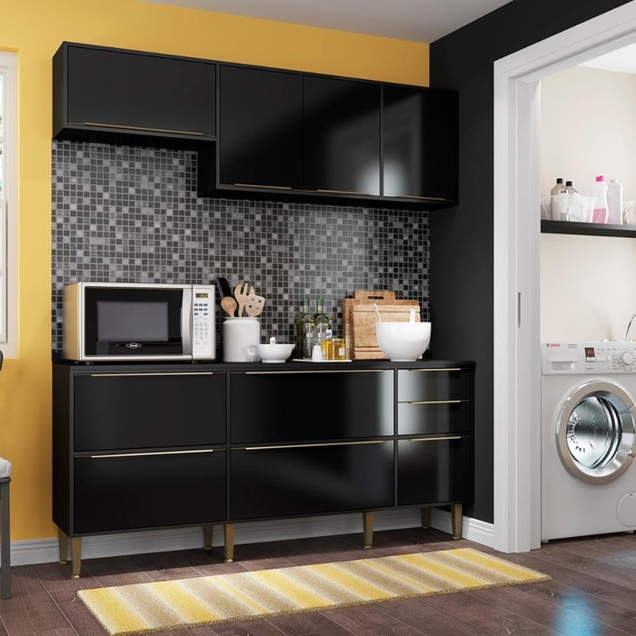 Cozinha Compacta Trevalla Móveis New Paris 8 Portas 3 Gavetas Preta Preto