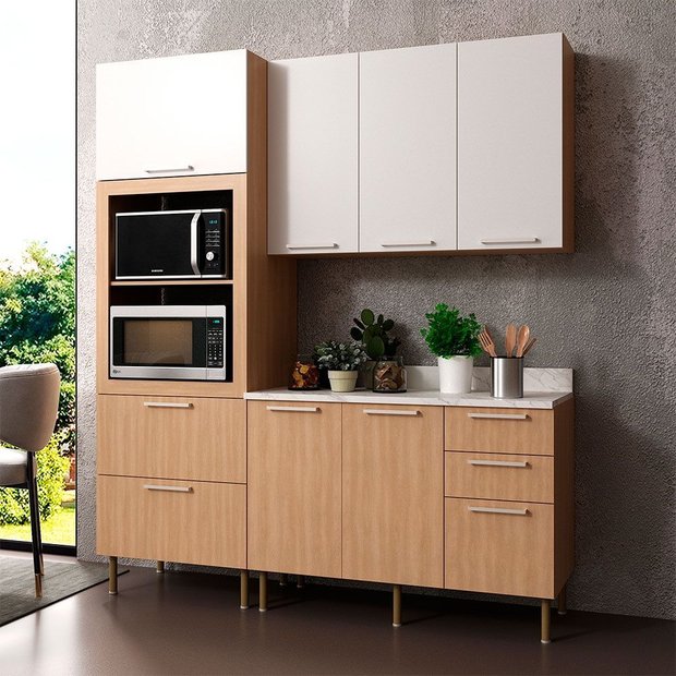 Cozinha Compacta Tulipa Cz1103 170cm com Divisor de Talheres Freijó Mármore Branco Tecnomobili Freijó Mármore Branco