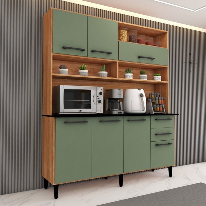 Cozinha Compacta Vitória 7 Portas 2 Gavetas Freijó/verde - Panorama Móveis