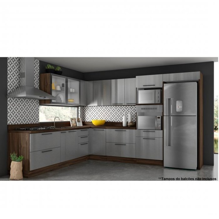 Cozinha Itatiaia Gourmet G3 10 peças Inox. Cozinha de madeira, sofisticada, com armários profundos, visual contemporâneo, acabamento exclusivo na frente de portas e gavetas em aço Inox. Conceito inovador para seu ambiente. Segmentada pela diferenciação e pelo uso de ferragens e matérias-primas de qualidade. Produto possui rodapé em VPC para dar um melhor acabamento e garantir resistência na limpeza do chão.