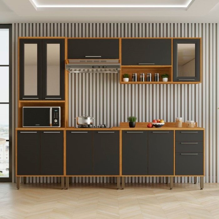 Cozinha Completa 12 Portas Cooktop 5 Bocas Paris 5 Peças Salleto:cinamomo/grafite
