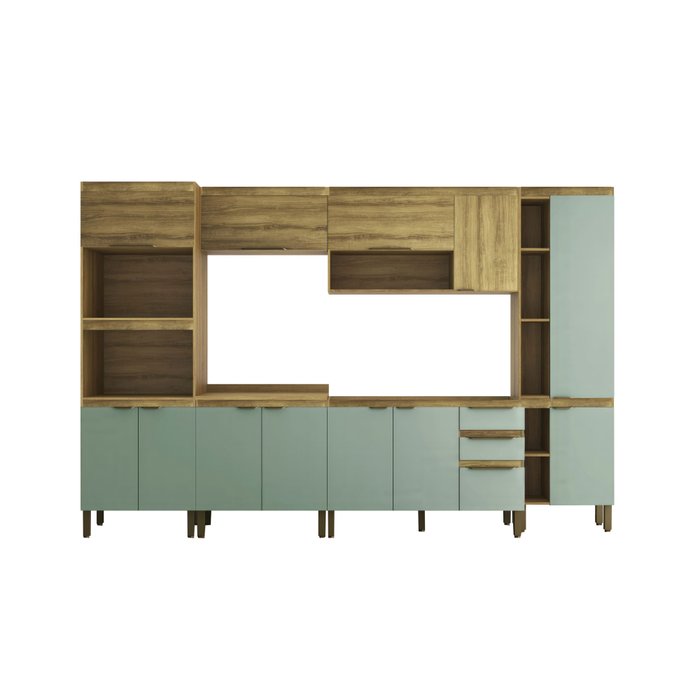 Cozinha Completa 2 Aéreo 2 Balcões 2 Torres 330cm Mel/verde Mel/Verde Bellagio