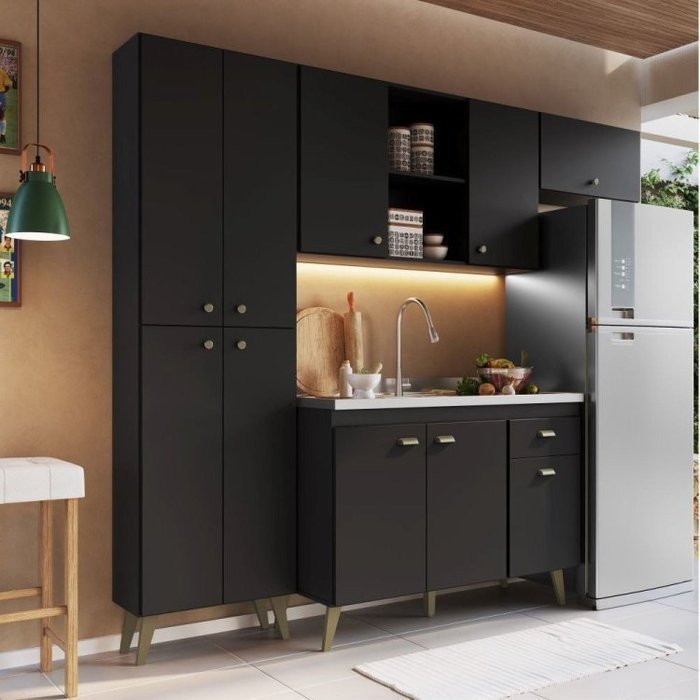 Cozinha Completa 3 Peças 10 Portas 1 Gaveta Atena Preto Onix