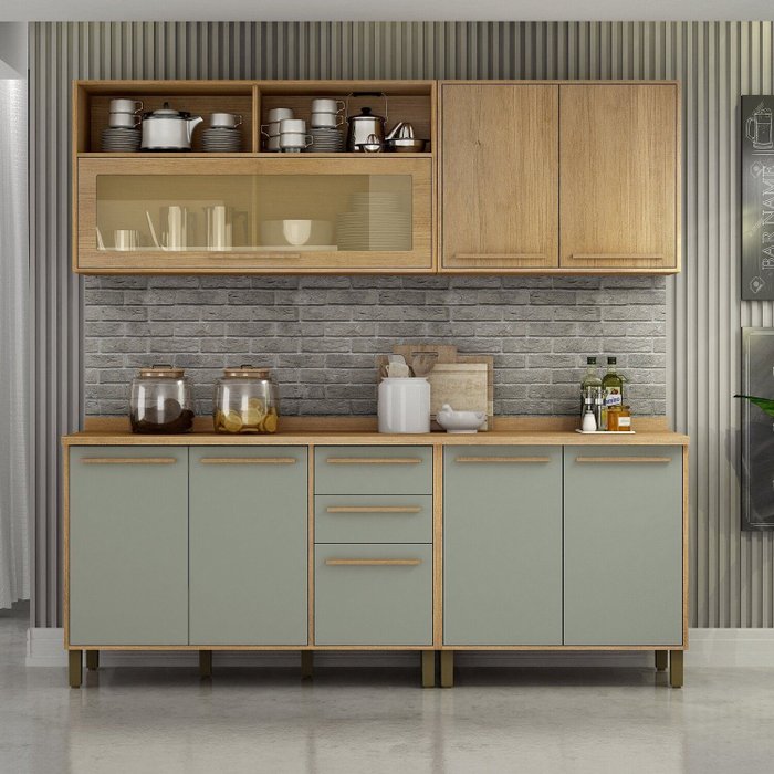 Cozinha Completa 4 Peças 8 Portas 2 Gavetas Salvador Marrom/Bege