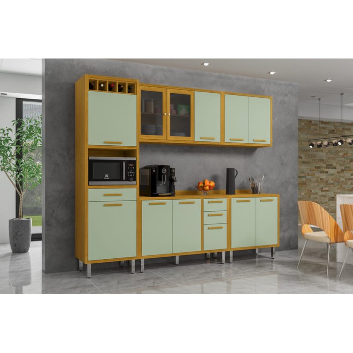 Cozinha Completa 5 Peças 11 Portas - Ísis-Cinamomo/Verde Menta - CHF Móveis