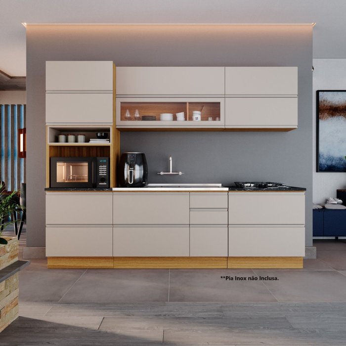 Cozinha Completa 5 Peças Mdf 9 Portas 6 Gavetas , Nicho para Forno, Recorte Cooktop 4 Bocas Inova Ng Itatiaia Freijó/Off White