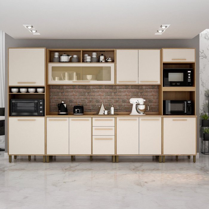 Cozinha Completa 6 Peças 12 Portas 2 Gavetas Salvador Marrom/Bege