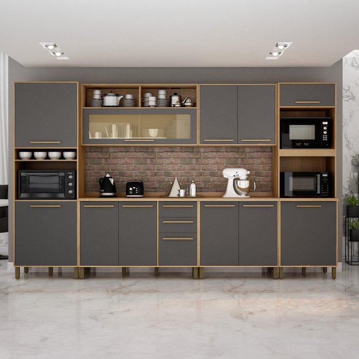 Cozinha Completa 6 Peças 12 Portas 2 Gavetas Salvador Marrom/Bege