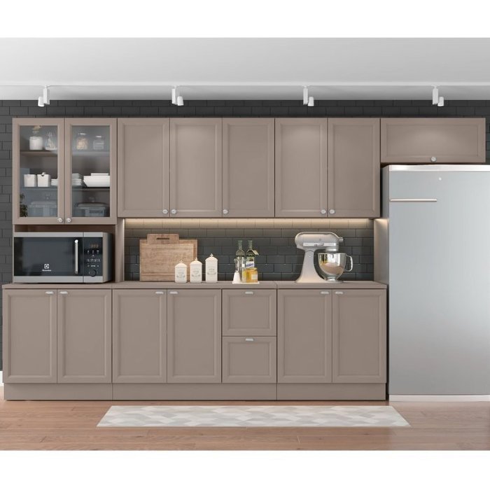 Cozinha Completa 6 Peças 14 Portas 2 Gavetas com Paneleiro Unna Espresso Móveis Fumê