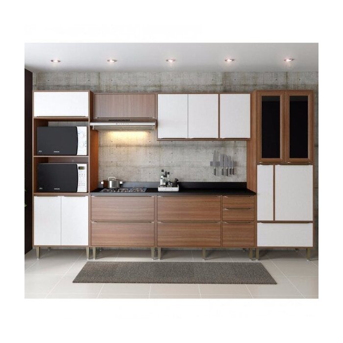Cozinha Completa 7 Módulos 14 Portas Calábria Multimóveis Nogueira e Nogueira com Branco