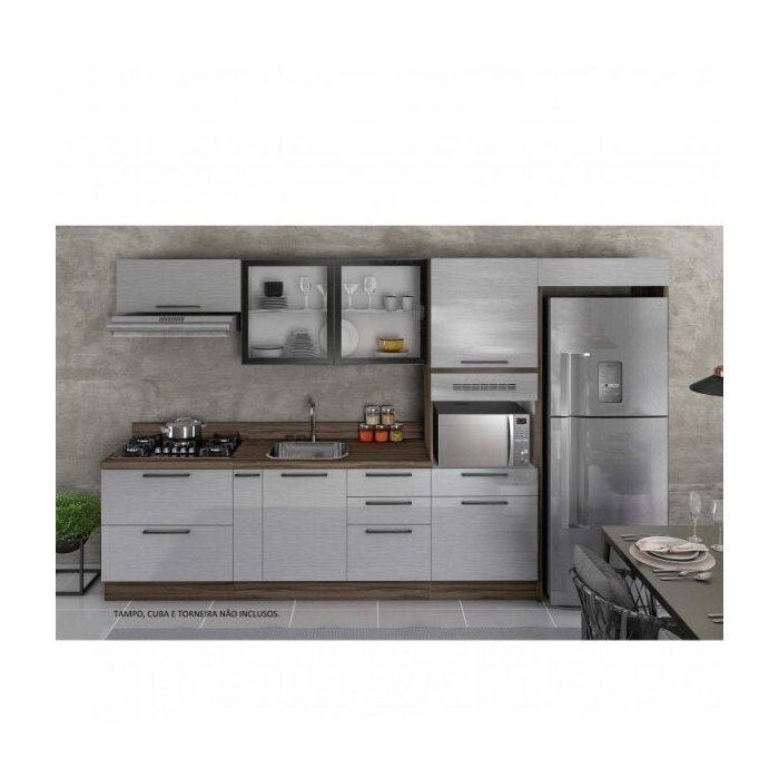 Cozinha Itatiaia Gourmet G3 7 peças Inox. Cozinha de madeira, sofisticada, com armários profundos, visual contemporâneo, acabamento exclusivo na frente de portas e gavetas em aço Inox. Conceito inovador para seu ambiente. Segmentada pela diferenciação e pelo uso de ferragens e matérias-primas de qualidade. Produto possui rodapé em VPC para dar um melhor acabamento e garantir resistência na limpeza do chão.