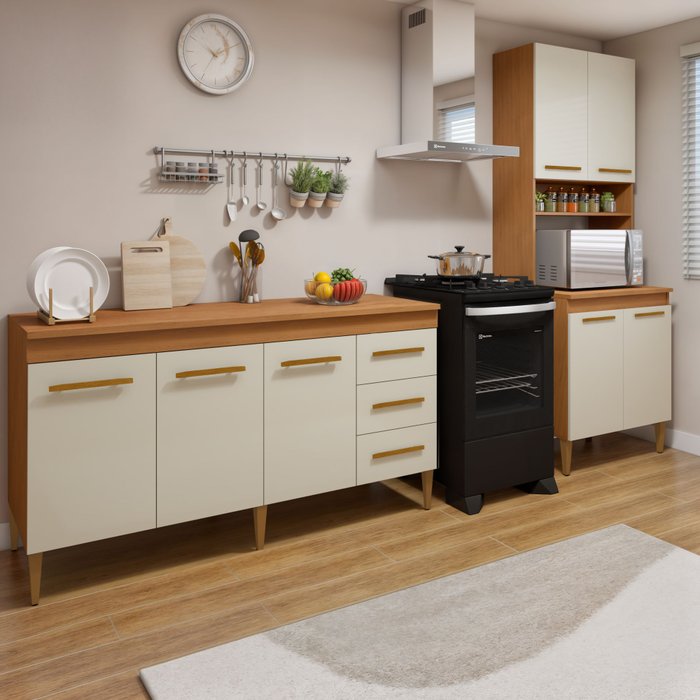 Cozinha Completa 7 Portas 3 Gavetas Guarujá Nature/Off White