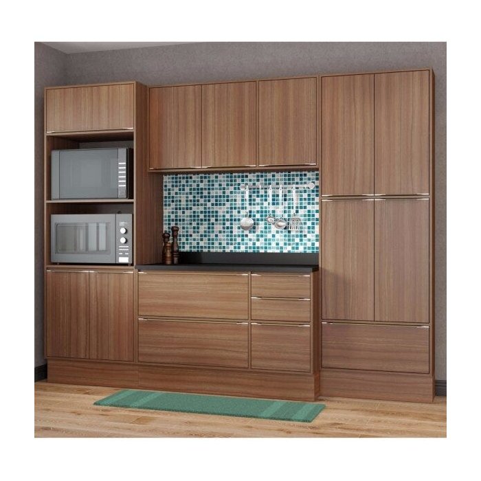 | Itens Inclusos | 1 Módulo para Forno e Microondas com Rodapé, 1 Aéreo Triplo, 1 Paneleiro Duplo com Rodapé, 1 Balcão de Pia com Rodapé, 1 Tampo para Balcão, Manual de Montagem e Kit Ferragem. |