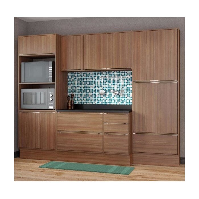 Cozinha Completa 8 Módulos 13 Portas Calábria Multimóveis Nogueira e Nogueira com branco
