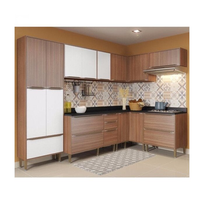 Cozinha Completa 8 Módulos 16 Portas Calábria Multimóveis Nogueira e Nogueira com branco