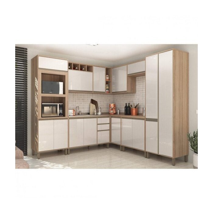 Composta por armários, gavetas, prateleiras, balcão para pia, oferece tudo o que é necessário para ter uma cozinha completa.