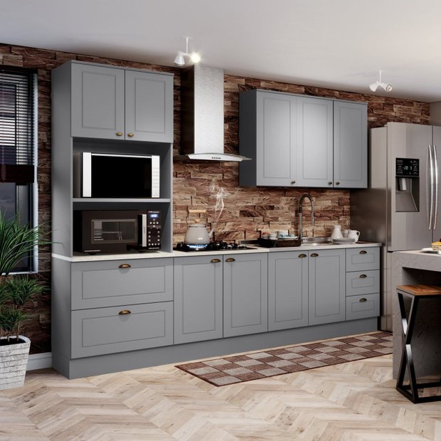 Cozinha Completa 8 Portas 5 Gavetas Emily Cinza/Calcare
