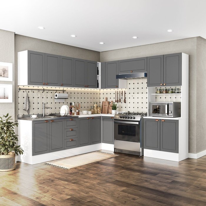 Cozinha Completa 9 Peças com Rodapé Pérola Yescasa Cinza/Branco