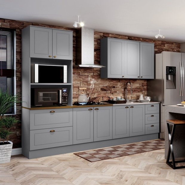 Cozinha Completa 9 Portas 5 Gavetas Emily Cinza/Nature