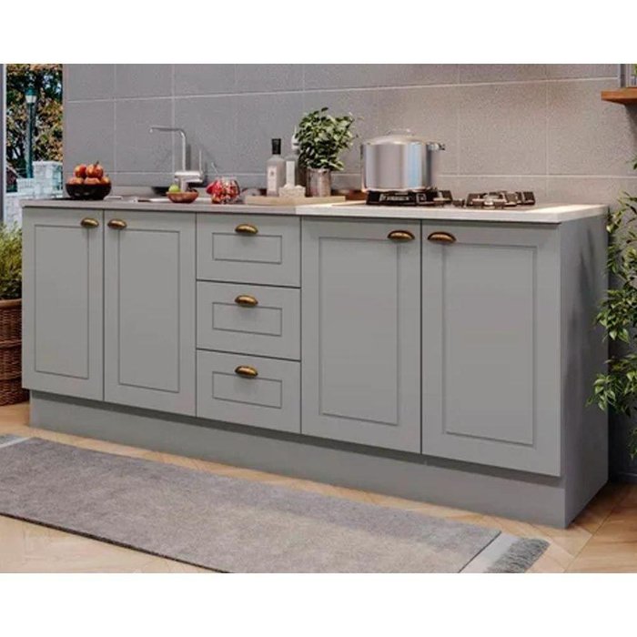 Balcão de Cozinha Americana 2 Portas e 3 Gavetas p/ Pia 120cm S/tampo Cinza - Henn
