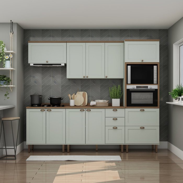 | Informações Complementares (Novo) | Cozinha 100% MDF Completa Americana 5 Peças com Portas Provençais Verde Mint |