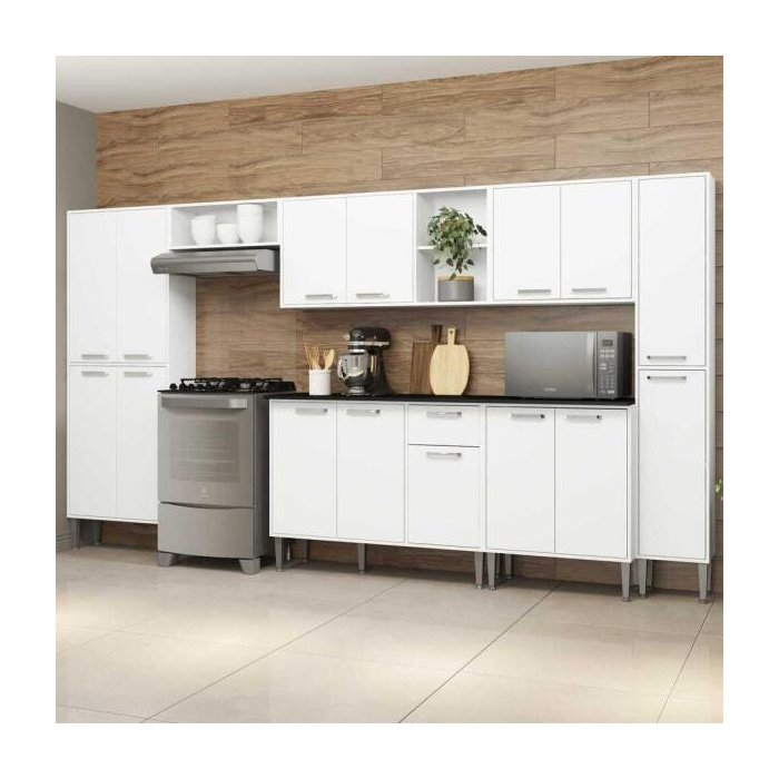 Cozinha Completa Armário e Balcão Xangai Blues Multimóveis Branco