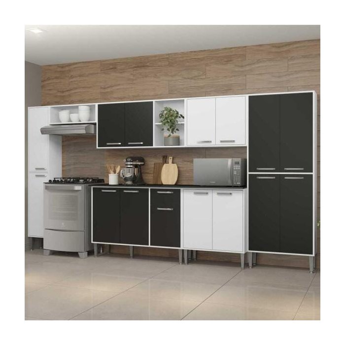 Cozinha Completa Armário e Balcão Xangai Blues Multimóveis Branco/Preto