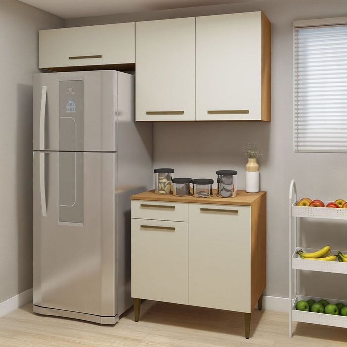 Cozinha Completa Atibaia 5 Portas 1 Gaveta Kaiki Móveis Nature com Off White