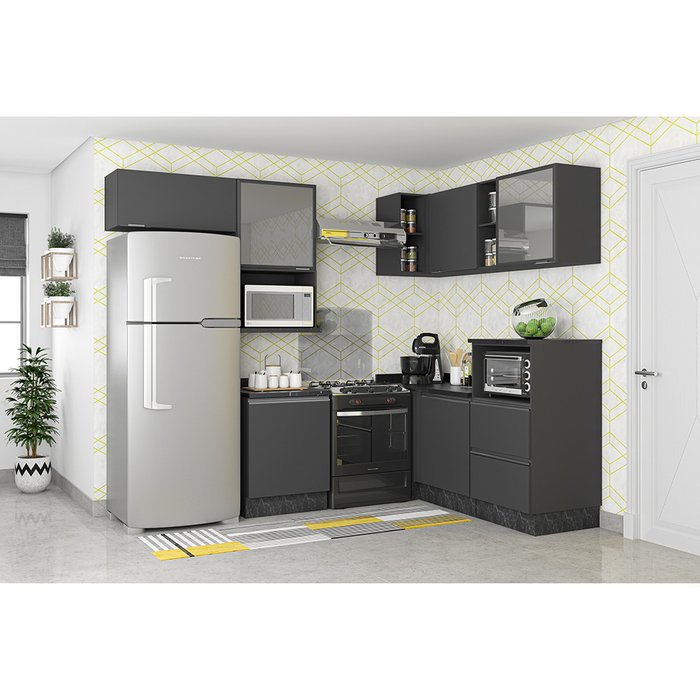 Cozinha Completa Bartira Linea com 5 Portas, 3 Gavetas e 4 Prateleiras Grafite