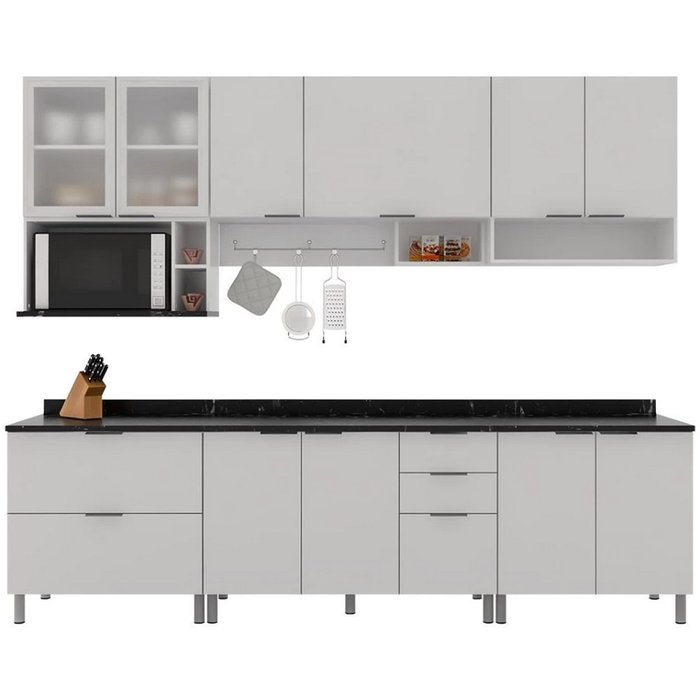 Cozinha Completa Bartira Rubi 5 Gavetas 10 Portas 7 Prateleiras Branco com Preto